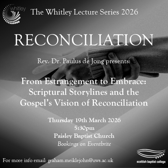 Alongside classes, we’re always planning ahead. We’ve got our first on-campus Open Day in November as it has traditionally been a time for school-leavers to consider next steps…but we also have a January intake so the Open Day is for anyone that is interested – please spread the word. To register for the Open Day, please email graham.meiklejohn@uws.ac.uk. Very advance notice too of a public lecture we’re hosting in March 2026. Our former lecturer, Rev Dr Paulus de Jong is returning to SBC for one night only as this year’s Whitley scholar. He will be sharing his Whitley Lecture on the topic of Reconciliation at Paisley Baptist Church on March 19th. We’ll have more details in the coming months, but please keep it free in your calendar! Finally, we’re moving forward on plans to launch our Masters programme next September and if you’re interested in knowing more please email Al on Alistair.Cuthbert@uws.ac.uk.